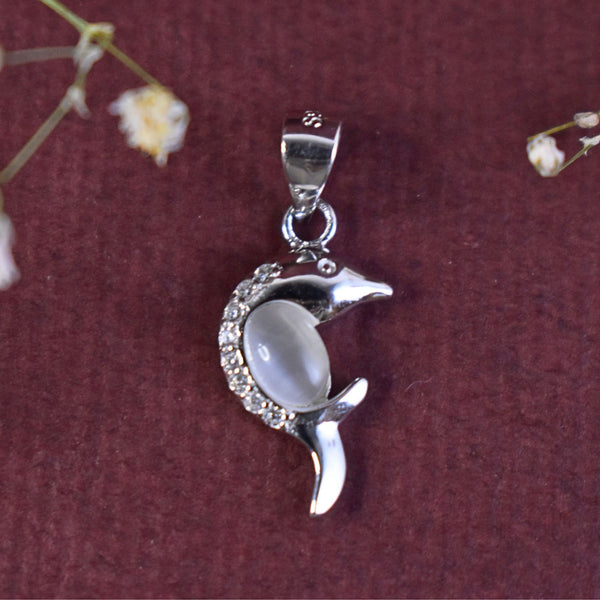 Crafted in a graceful dolphin design, this pendant features a smooth moonstone at its center with a touch of sparkling accents. A playful yet elegant piece that adds charm to any look.